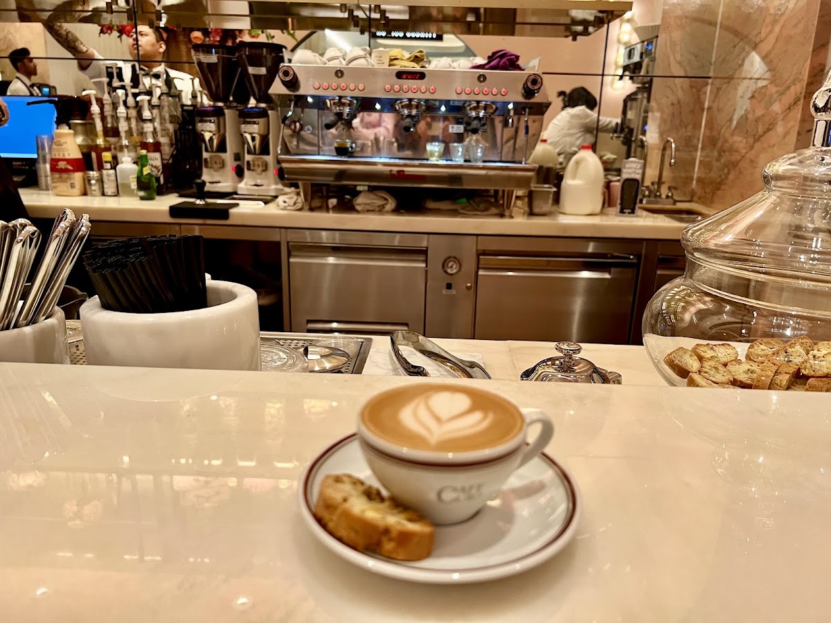 This was our favorite breakfast spot at the Fountainebleu Hotel! The beautiful, warm, and peaceful decor made us stop by here. The aromatic coffee smell was hypnotic! The food was excellently prepared, and the coffee was outstanding. We ordered the Bocon & Fried eggs breakfast every day for 3 days because it was so delicious and hit the spot. Our room service breakfast was $60 each for plain eggs and bacon, and our breakfast here was half that price! We also had a white Mocha latte and a Mocha latte. Both were yummy! My daughter also got an almond croissant one day and loved it. The service was friendly and fast. Seating is limited, and so we took our breakfast back up to our room to enjoy it. It was a great experience to start the day.